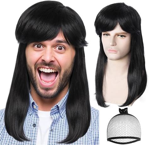 Hair Capblack Mullet Wigs For Men Natural 70S 80S Rock Outfits Funny Wigs With Bangs Mens Disco Costume Black Disco Hair Crazy Funny Costume For Party