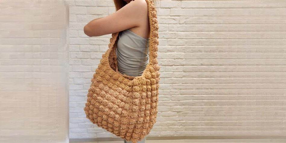 LEFT-HANDED PDF English Crochet Pattern/ Tutorial Instructions Cloud Popcorn Puffy Y2k Hobo Shoulder Bag Tote Minimalist Puffer Slouchy Diy
