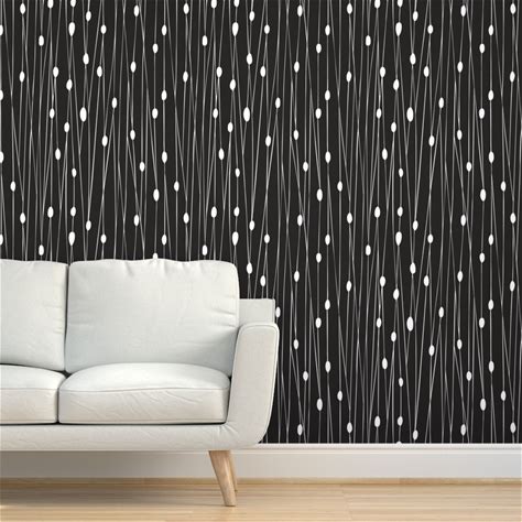 Modern Minimalist Lines & Dot Geometric - Abstract Linear Dot Black White J PVC-Free Type II 2' X 12'