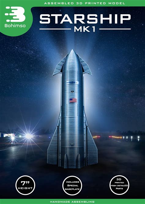 Detailed 3D Printed Spacex Starship S24/B7 Model Rocket