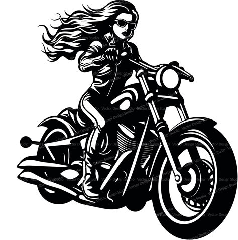 Girl Riding Motorcycle Svg & PNG Files, Woman Biker Clipart Silhouette Vector Image SVG Shirt Design Graphic, Transparent Background Print
