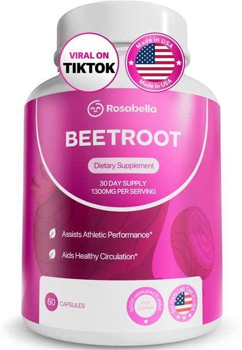 Rosabella Organic Beet Root Capsules - 1300Mg Beetroot Powder For Circulation & Natural Energy Boost, Non Gmo, Lab Teste