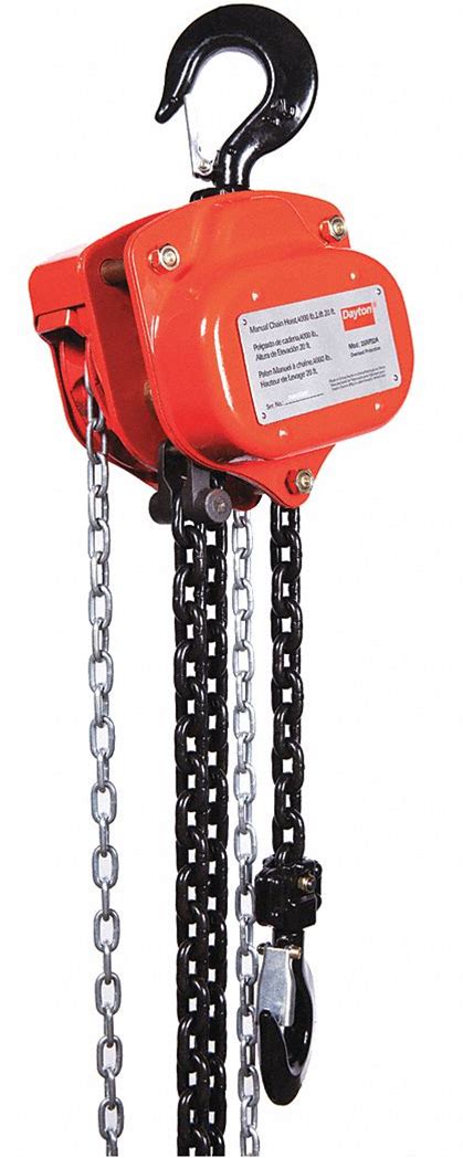 Dayton Manual Chain Hoist: Hook Mounted - No Trolley, 4,000 Lb Lifting Capacity, 20 ft Lift Lg Model: 29XP32