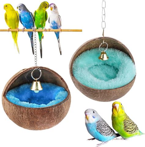 HAICHEN TEC Natural Coconut Shell Bird Nest House Bed Breeding Nesting Anti-Pecking Bite With Warm Pad And Bell For Bird Parrot Budgie Parakeet