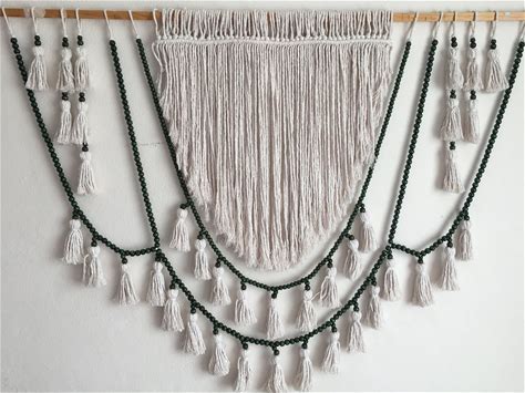 Beaded Macrame, Tassels Wall Hanging With Green Beads, Macrame Boho Decoration