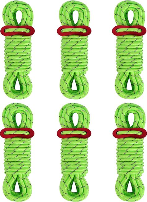 Smithok 16.4ft 6 Pack 4mm Guy Lines Ultralight Tent Cords With Aluminum Adjuster Tensioner Outdoor Camping Guylines Ropes For Tent Tarp,Climbing,