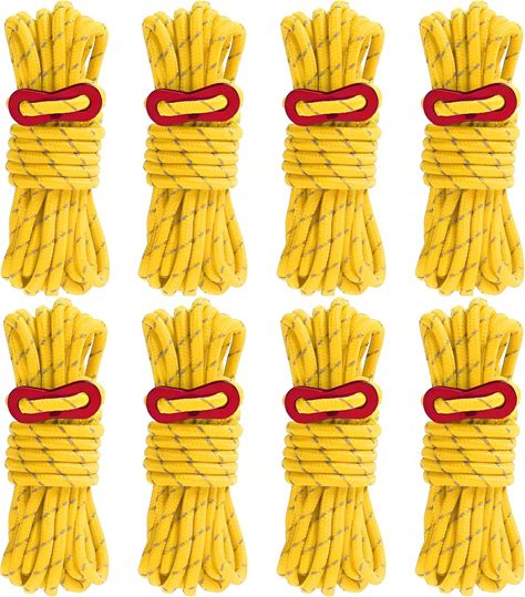 Smithok 8 Pack High-Reflective Guy Lines 4mm Tent Cords High-Strength Lightweight Camp Ropes With Aluminum Adjuster Tensioner For Tent, Tying Down