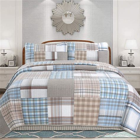 Linery & Co. Cotton Stitched Reversible Boho Floral 3 Piece Quilt And Sham Set - Regal Garden - Blue
