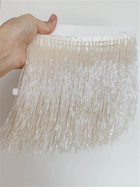 Ivory Bead Fringe Trim For Haute Couture, Handmade Bead Fringe Tassel
