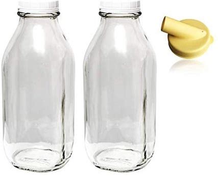 32 Oz Glass Milk Bottles W/ 3 White Caps (1 Pack) - Food Grade Milk Jars With Lids - Dishwasher Safe - Bottles For Milk, Buttermilk, Honey, Maple Syru