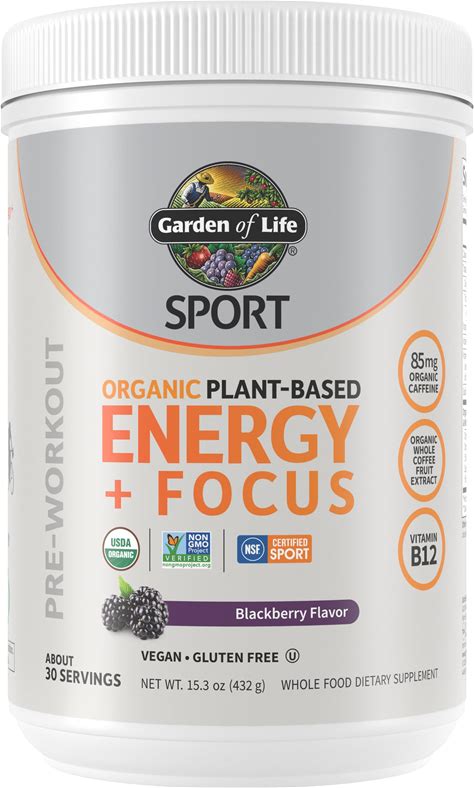 Garden Of Life Sport Organic Plant Based Energy + Focus Clean Pre Workout Powder, With 85Mg Caffeine, Natural No Booster, B12, Vegan, Gluten Free,