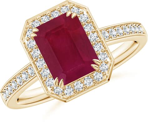 Angara 1.31 CTW Tapered Shank Ruby Solitaire Engagement Ring With Diamond Accents In 14K Yellow Gold