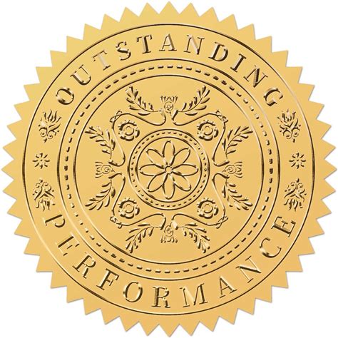 CRASPIRE 100Pcs Embossed Gold Foil Sticker Floral Outstanding 2" Vintage Foil Self Adhesive Sticker Labels Performance For Award Envelope Achievement