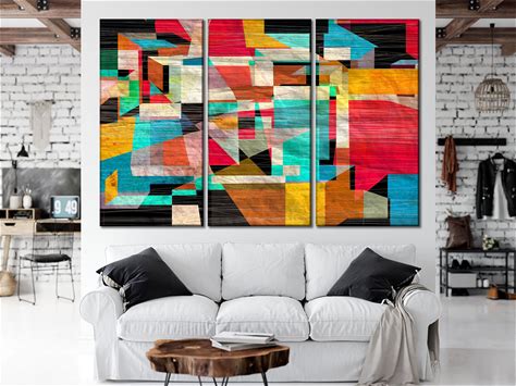 Geometric Elements Pattern Abstract Large Canvas Wall Art Colorful Modern Artwork Canvas Abstract Canvas Art