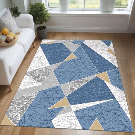 Blue And White Geometric Rug: Modern Abstract Scratch Texture