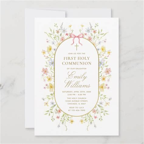 Meadow Wildflower Cross The First Holy Communion Invitation
