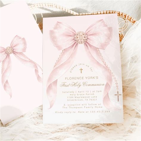First Holy Communion Coquette Bow Girl Invitation