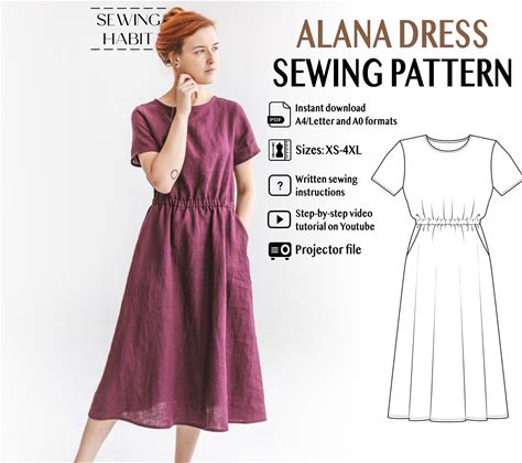 PAPER A-Line Dress Sewing Pattern, Women Sewing Pattern, High Waist With Elastic Waistband, Summer Linen Dress, Sewing Habit