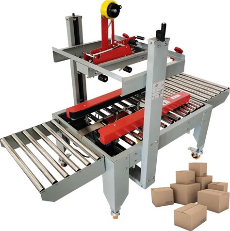 Automatic Side Belt Drive Folding Flaps Carton Case Sealer Sealing Machine With Feeding Roller Table