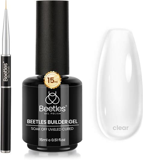 Beetles Builder Gel For Nails Low Heat-0.5 Oz 7 in 1 Nail Thickening Strengthening Building Apex With Liner Nail Brush For Beginner DIY Salon At Home,