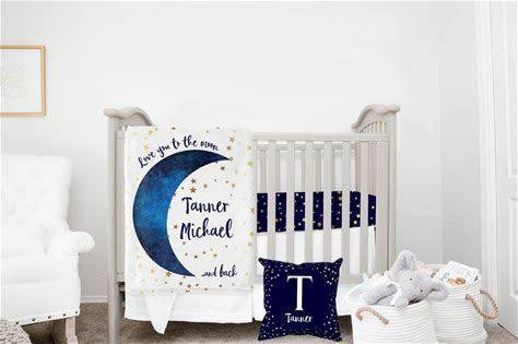 MINI Crib Bedding Set, Moon And Stars Crib Bedding, Boy Mini Crib Set, Baby Boy Crib Bedding, Love You To The Moon And Back Mini Crib Sheets