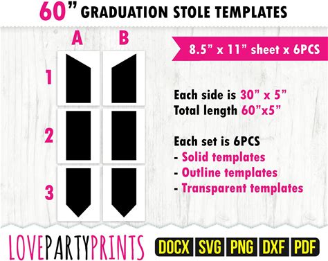 Graduation Stole Template Svg, Pdf, Png, Dxf, 60" Blank Template, 8.5"X11", Ms Word Docx, Stole Template, US Letter Printable Pdf, CA134