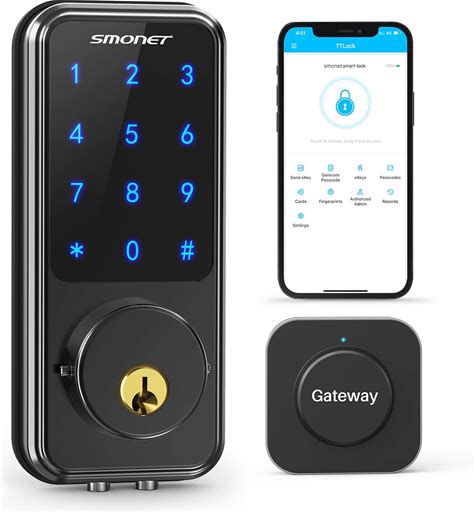 Smart Door Lock, SMONET Smart Wi-Fi Deadbolt, Keyless Entry Door Lock Bluetooth Touchscreen Digital Electronic Auto Lock With Gateway, Work With Alexa, APP, Code, Key For Home Apartment