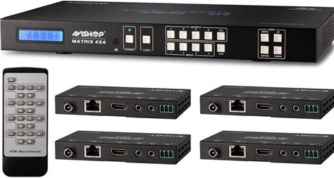 4X8 4X4 4Khdbaset HDMI Matrix Switcher W/ 4 Poc Hdbast Receivers (Cat5e Or CAT6)