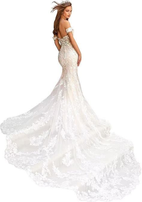 Mermaid Wedding Dresses For Bride Lace Beach Tulle Applique V-Neck Spaghetti Straps Boho Bridal Dress For Bride With Train