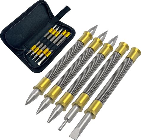 WIOXEWI 5-Piece Spring Nail Set & Nail Punch Tool - Dual Head Nail Setter Punch (1/32", 1/16", 3/32", 1/8"), Dual Head Center Punch (1/8", 3/16"),