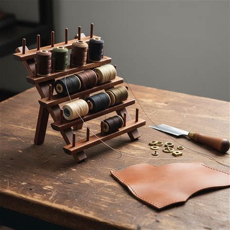 Wooden Thread Spool Rack Holder Leather Craft Waxed Thread Diy Sewing