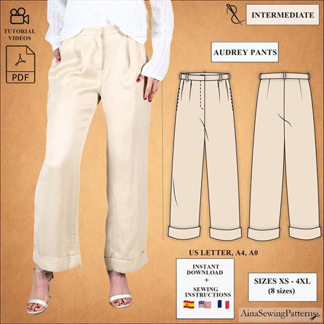 Edna Trousers Digital Pattern Pdf Sewing Pattern With Tutorial Size US 12 UK 16 EU 44