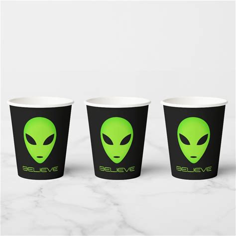 Funny Green Alien Head Custom Birthday Party Paper Cups