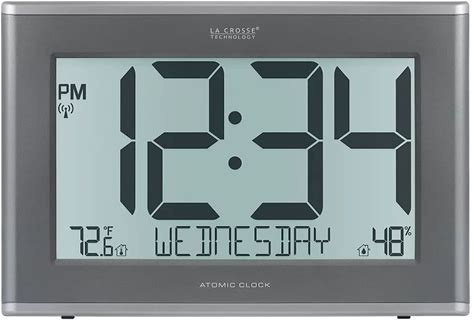 La Crosse Technology Extra-Large Atomic Digital Clock With Outdoor Temperature And Humidity - Silver