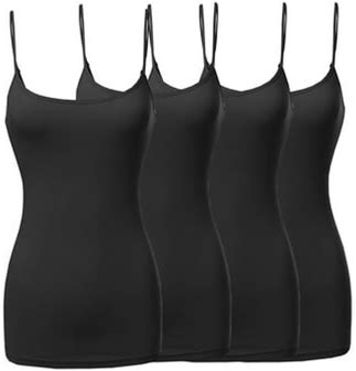 Active Basic Women & Plus Basic Solid Long Length Adjustable Spaghetti Strap Camisoles (4Pk - Black/Black/Black/Black, S)