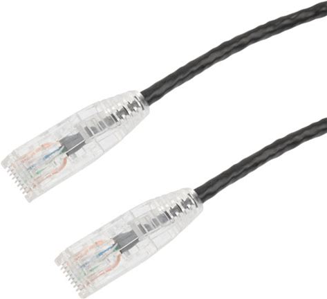 Category 6A 10Gig Component Tested Slim Ethernet Patch Cable Assembly, 28AWG Stranded, RJ45 Male Plug, CM PVC Jacket, Black, 20ft