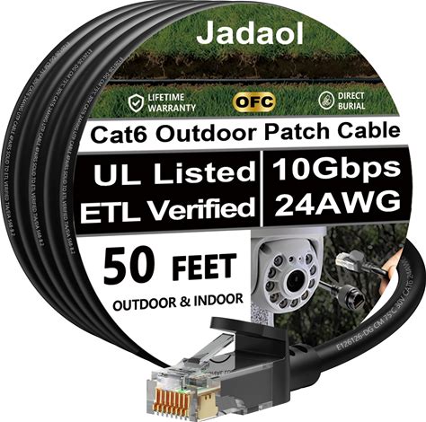 Cat6 Outdoor Ethernet Cable 50Ft, 24AWG 10Gbps Support Cat8/7 Network, Pure Copper, Direct Burial Waterproof Underground Anti-UV (1ft 3ft 5ft 10ft