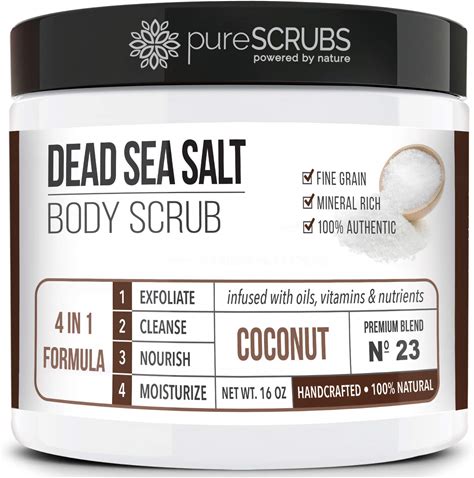Purescrubs Premium Coconut Body Scrub Set - Large 16Oz Dead Sea Salt Body Scrub With Infused Essential Oils & Nutrients, Includes Wooden Spoon, Loofah