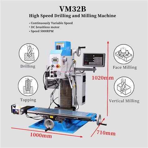 VM32B Multifunctional Drilling And Milling Machine Stepless Variable Speed DC Brushless Motor