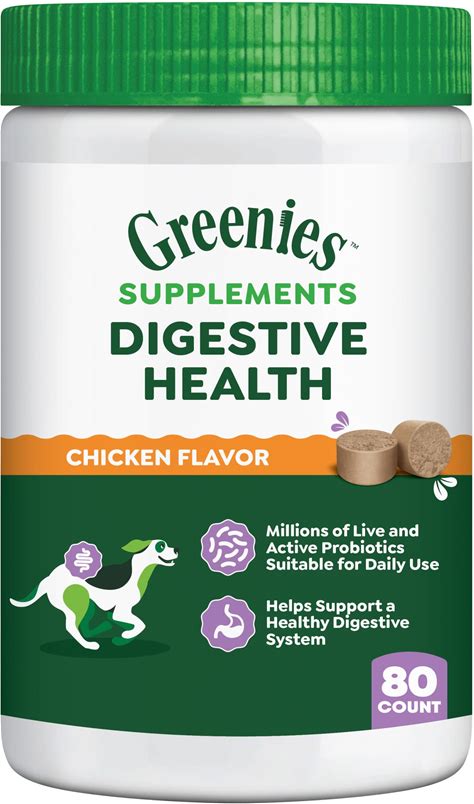 Greenies Supplements Digestive Health Probiotics For Dogs Chicken Flavor, 15.6 Oz. Tub Of 80 Ct.