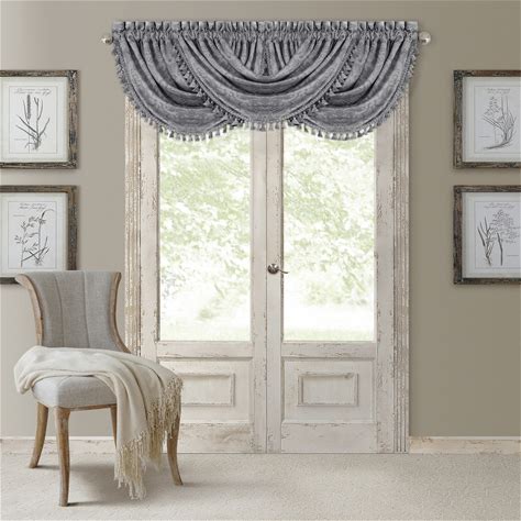 Queen Street Lafayette Rod Pocket Waterfall Valance | Silver | One Size | Curtains & Drapes Valances