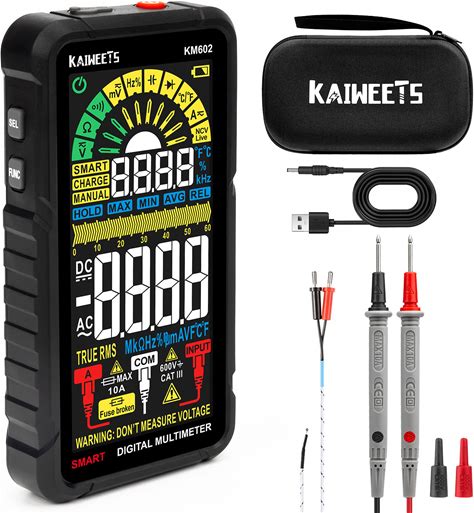 KAIWEETS Digital Multimeter TRMS 6000 Counts Voltmeter Auto-Ranging Fast Accurately Measures Voltage Current Amp Resistance Diodes Continuity Duty-Cycle Capacitance Temperature For Automotive