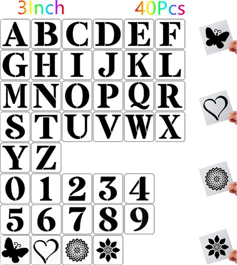 40Pcs 3 Inch Letter And Number Templates, Reusable Plastic Large Alphabet Art Letter Stencils For Painting On Wood, Wall, Fabric, Rock, Chalkboard,