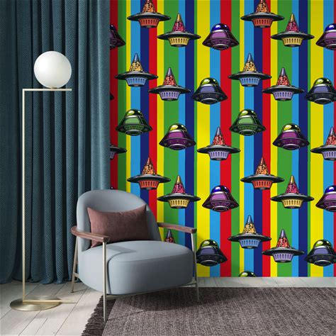 Alien Wallpaper For Space Decor, Ufo Wallpaper, Kid's Room Aliens Wall Art