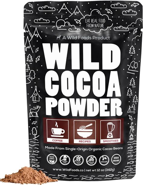 Wild Foods Organic Cocoa Powder | Single Origin Unsweetened Keto Chocolate Powder For Cooking & Baking | 100% Natural Cacao Beans | Sugar Free Non