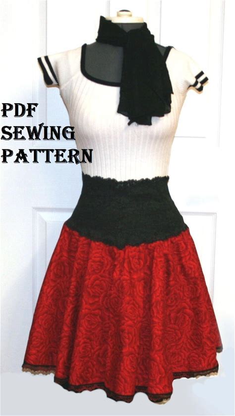Womens Sewing Pattern Circle Skirt Printable Pattern Rockability PDF Sewing Pattern High Waist Low Waist