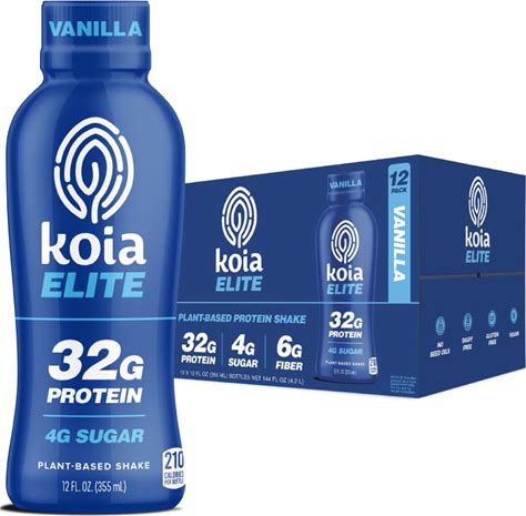 Koia Elite Plant Based Protein Shake, Vanilla, 32G Protein, 4G Sugar, 6G Prebiotic Fiber, Pre & Post Workout Nutritional Drink, No Seed Oils,