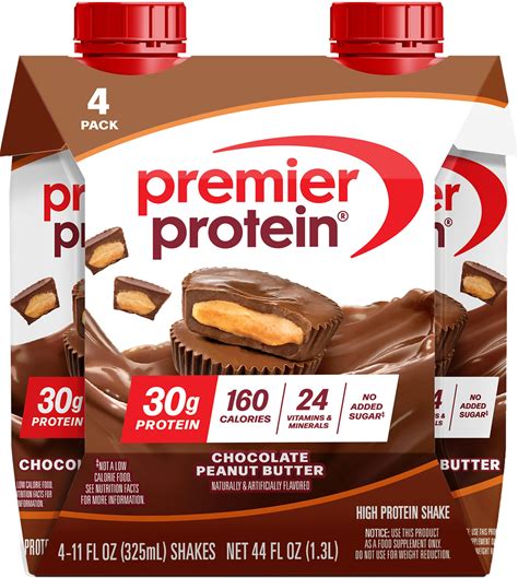Premier Protein Shake, Chocolate Peanut Butter, 30G Protein, No Added Sugar, 24 Vitamins & Minerals To Support Immune Health, 11 Fl Oz, 4 Pack