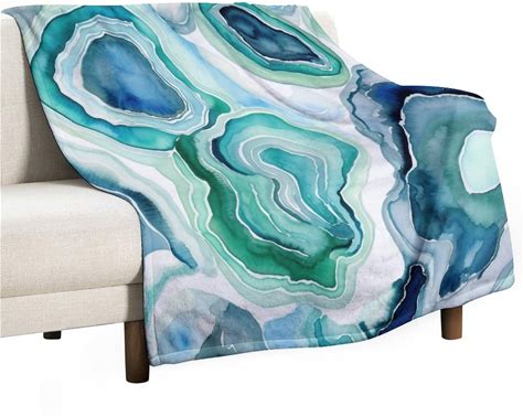 Agate Geode Watercolor Pattern Blue Green Gray Blanket Marble Abstract Pattern Soft Blankets And Throws For Sofa 70"X80" Super Soft Flannel Throw