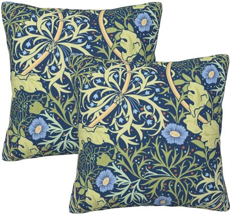 William Morris Green Blue Vintage Floral Pillow Cover,Botanical Pattern William Morris Forest Decorative Throw Pillow Covers Cozy Soft Pillowcase